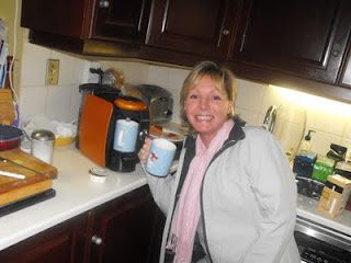 I am enjoying my machine. I have had several coffees BUT because I am so generous I served up my first cup to my friend Lisa. She had been hearing all about my twitter coffee machine all week and so when she heard that the machine had arrived she quickly came knocking at my door….two days in a row.